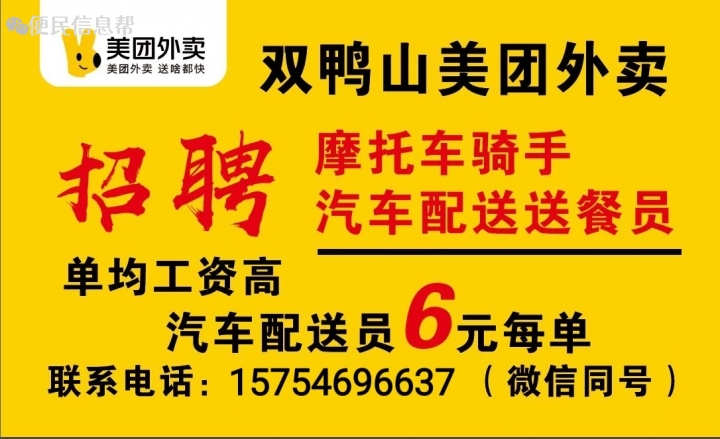 美团外卖招全职骑手,兼职骑手,早班6:30-19:00,晚班...