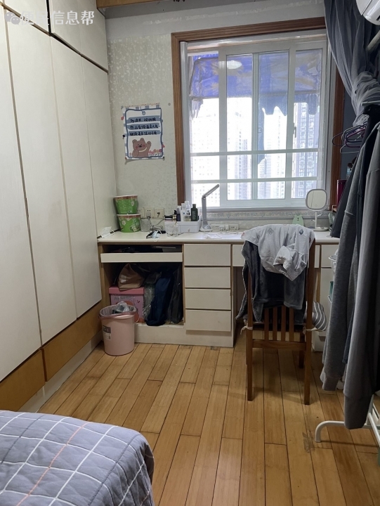间均朝南,大房间有阳台。(因为是老小区所以装修一般,不过蛮干净明亮的)