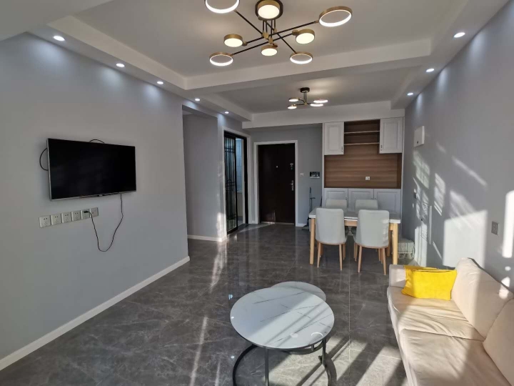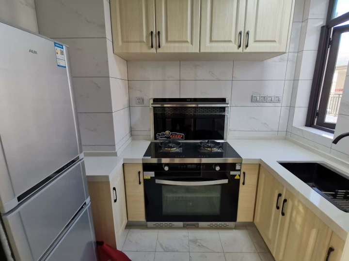 家电齐全,精装修,三房一厅一厨一卫,客厅有中央空调,每个房间都有壁挂冷暖空调,厨房有集成灶做饭方便